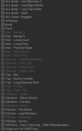 - 90+ Toggles for EVERYTHING (7 Tops, 5 Bottoms, 3 Shoes, 30+ Accessories, A LOT of Hair Options, Extras...)